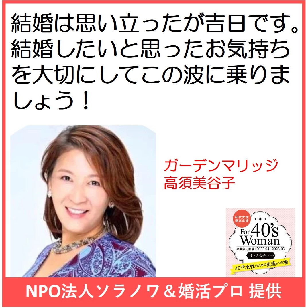 対象: 女性:年齢相応 男性:〜49歳の独身者 参加費: 女性:9,000円 男性:11,000円 ランチプレート&飲み放題 問合せ ガーデンマリッジ/高須 07054520420