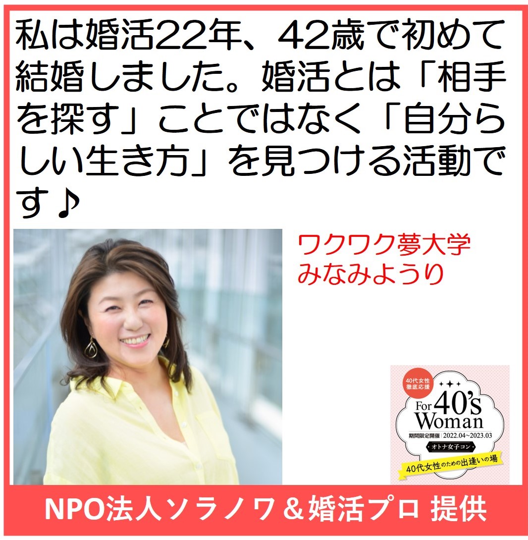 主催:NPO法人ソラノワ 講師:早田敬三(婚活応援委員会) 会場:ZOOMオンライン 対象:結婚を意識してる独身男女 ※婚活事業者も大歓迎です!!!