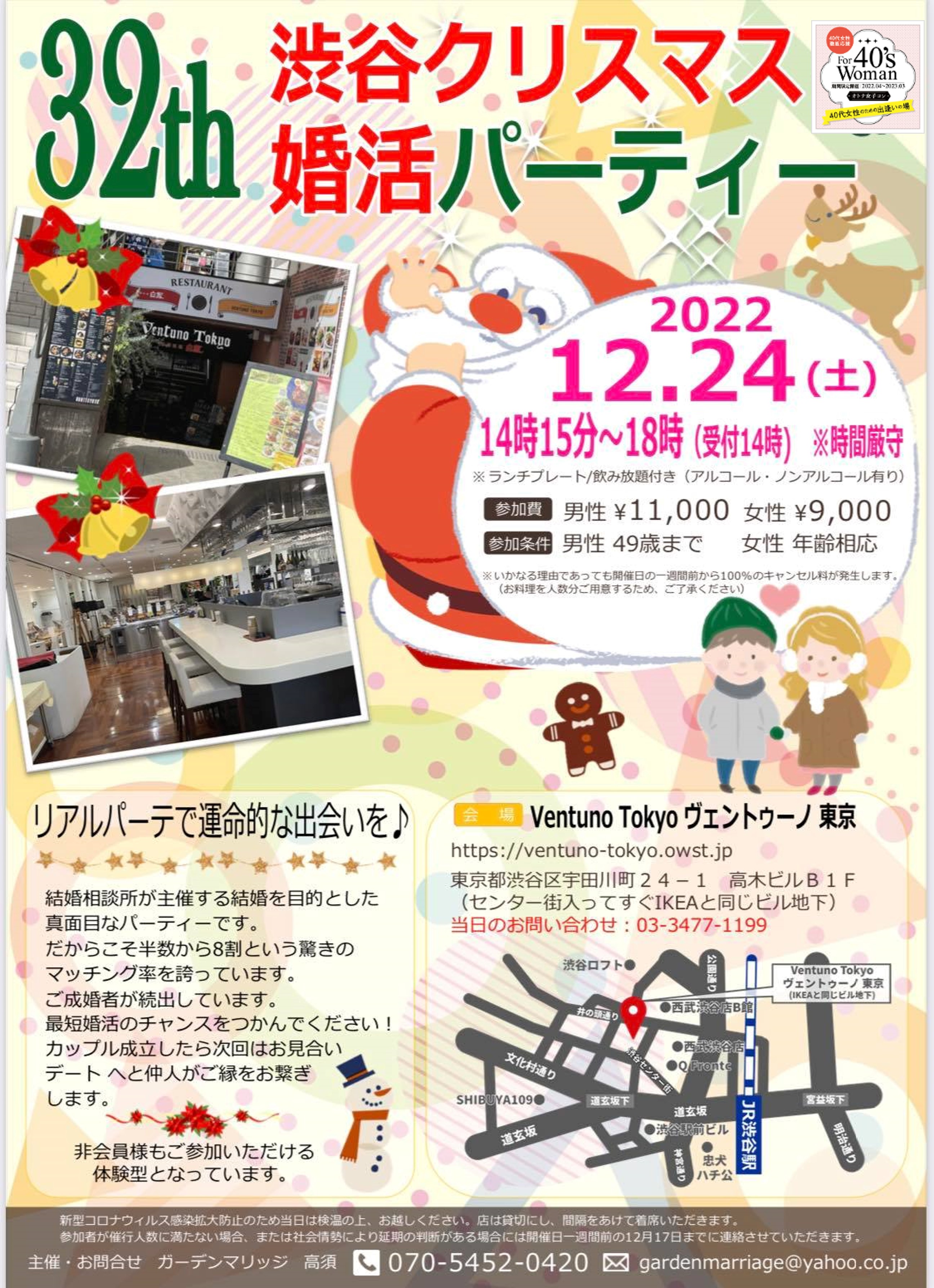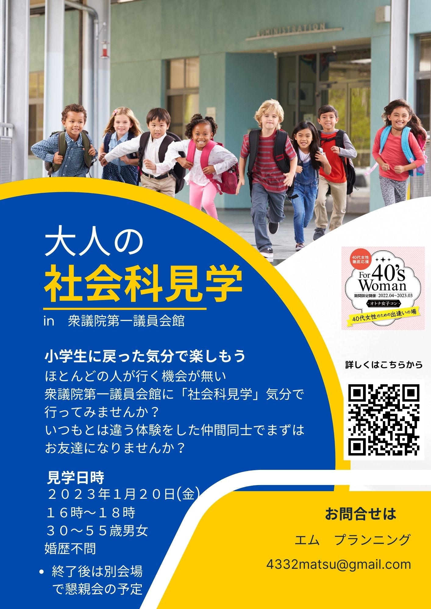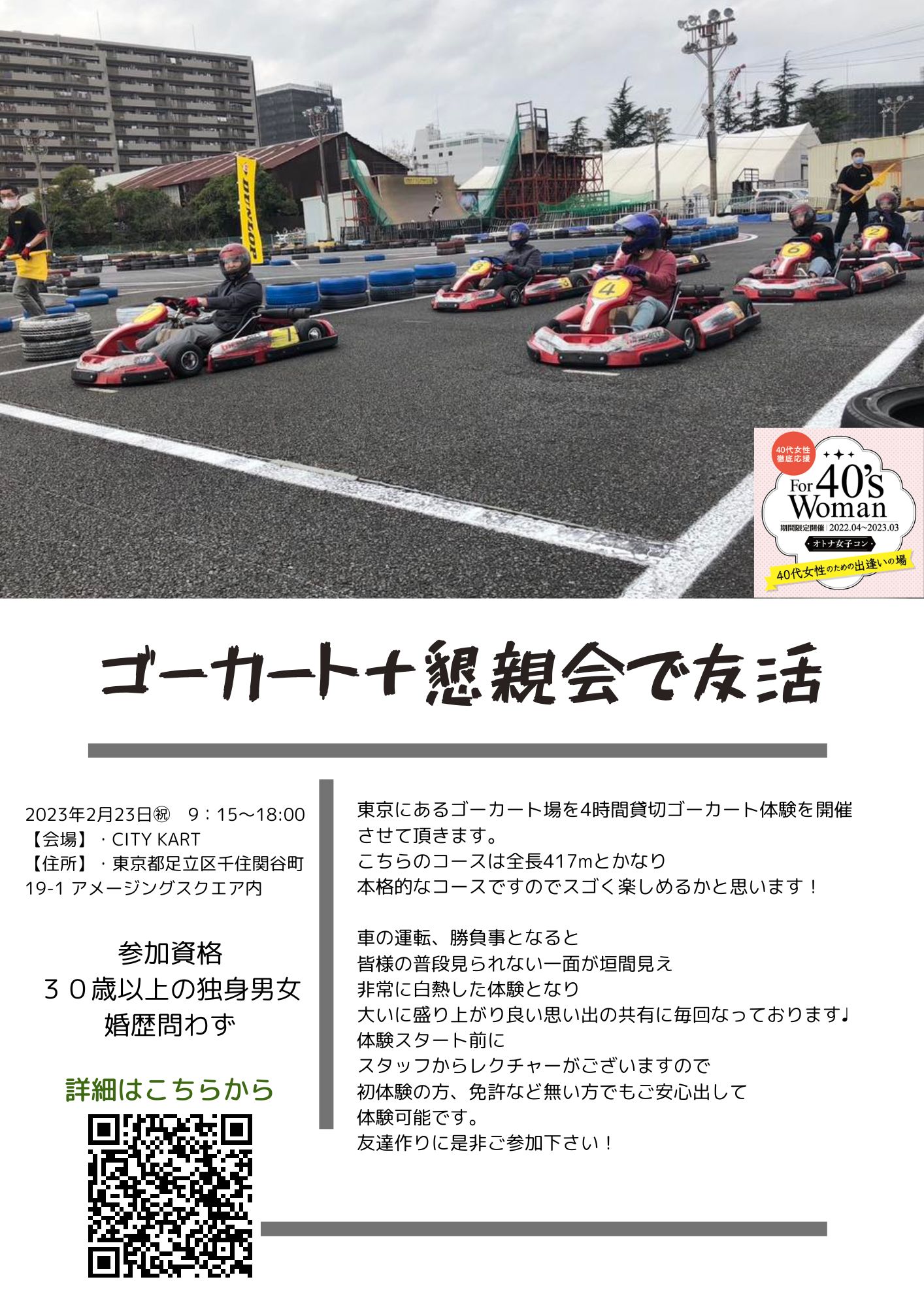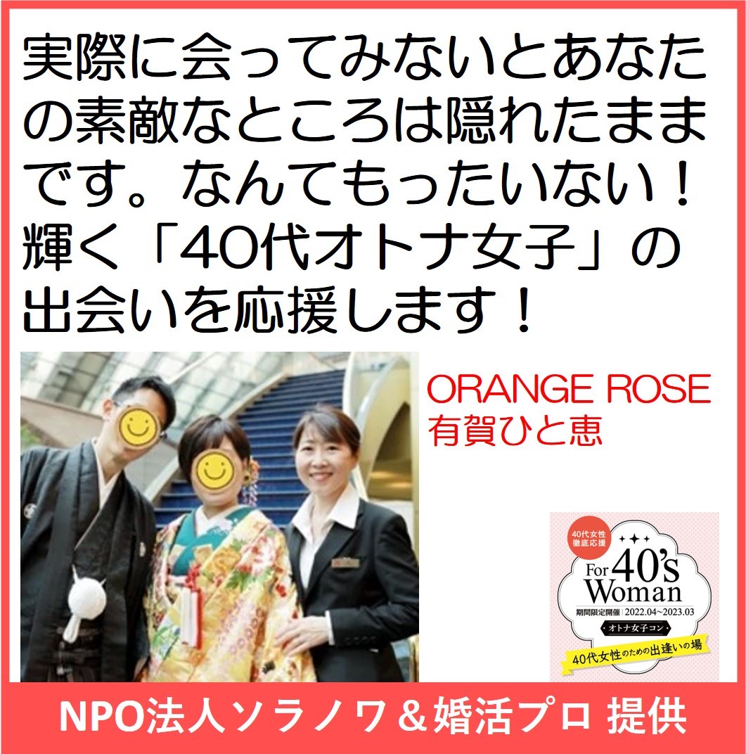 40代女性を応援しながら もちろん男性も! そして年齢対象外の女性も 参加可能イベントが続々エントリー! 自分に合った「出逢い場」GETです! 【お願い】