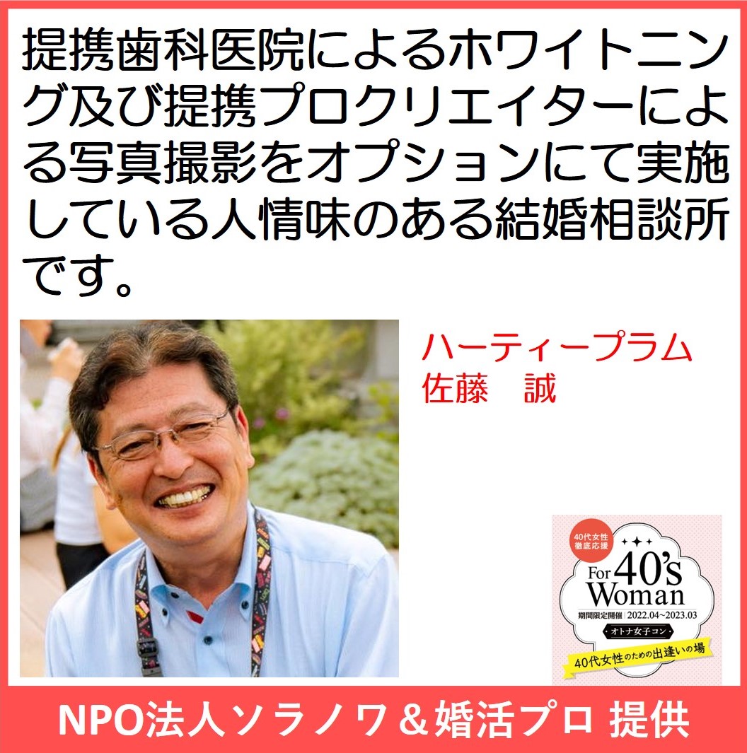 主催:NPO法人ソラノワ 講師:早田敬三(婚活応援委員会) 会場:渋谷区大和田センター 2F 第7会議室 東京都渋谷区桜丘町23-21 対象: 結婚を意識している独身者 ※婚活事業者の方々も大歓迎!!!