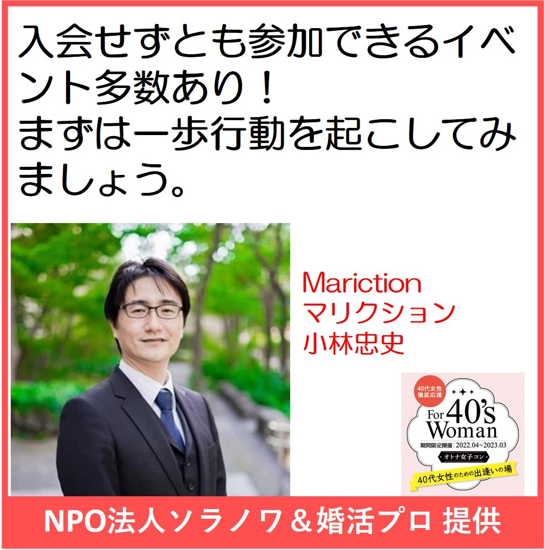 対象/20代〜50代独身男性女性 結婚歴不問