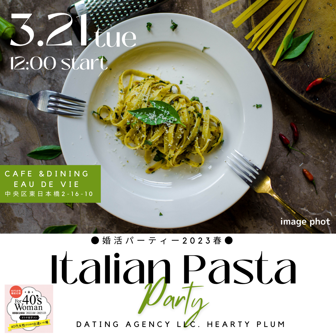 イタリアンパスタつき!春に向かっての、ランチ付き婚活パーティーです。